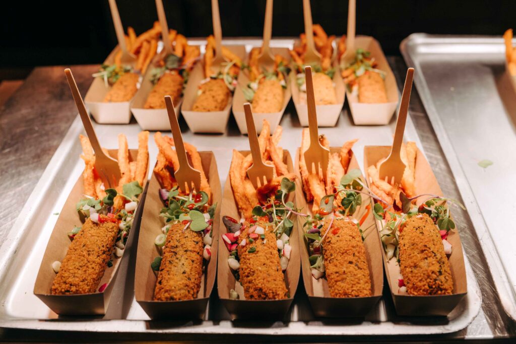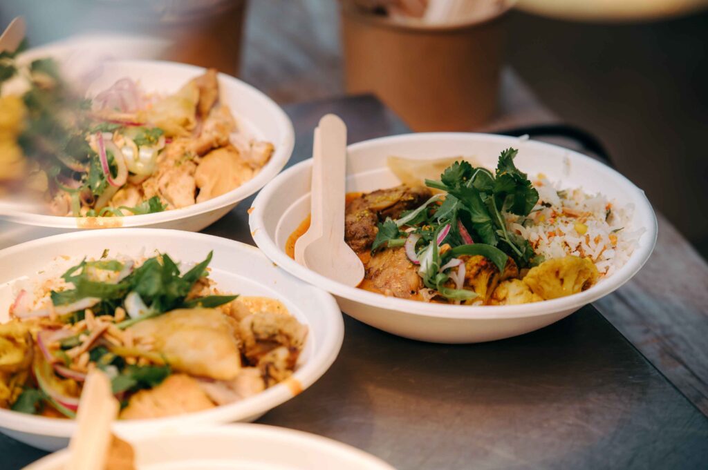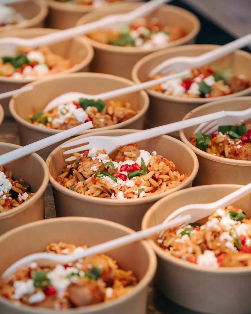Zo werkten we met herbruikbare bekers en was er een overzichtelijk afvalplan met duidelijke sorteerpunten. Het eten werd door de lokale cateraar Guzman verzorgd: lekkere wereldkeuken met volop aandacht voor vegetarische alternatieven om zo de milieu-impact wat te beperken. De voedseloverschotten werden gedoneerd aan een sociaal restaurant gelegen op de site van Asiat Park.