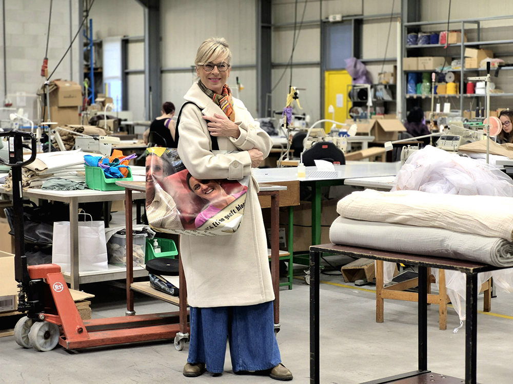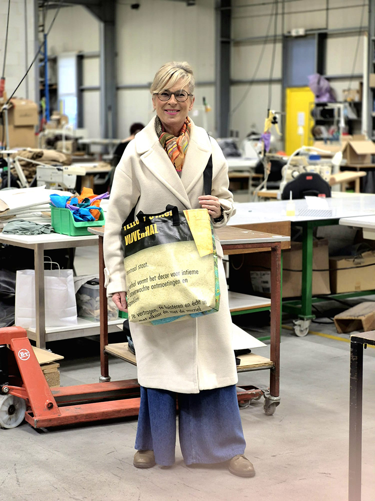 Die vonden we bij maatwerkbedrijf Lidwina in Mol. Hun afdeling Needlework is gespecialiseerd in het omtoveren van stoffen naar gebruiksklare goederen. Zij zullen de zeilen verknippen en stikken tot leuke Totebags die de Etion-medewerkers dan o.a. kunnen gebruiken om materiaal te transporteren naar events.